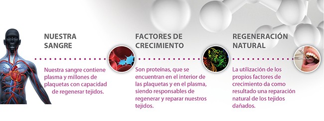 El proceso de regeneración se realiza mediante la extracción de sangre que contiene plasma y millones de plaquetas, responsables de la reparación de los tejidos. Posteriormente, los factores de crecimiento se liberan al activarse las plaquetas, y tienen la capacidad de estimular la autorreparación. La utilización de los propios factores de crecimiento da como resultado una reparación natural de los tejidos dañados.